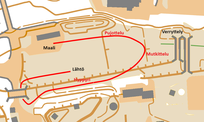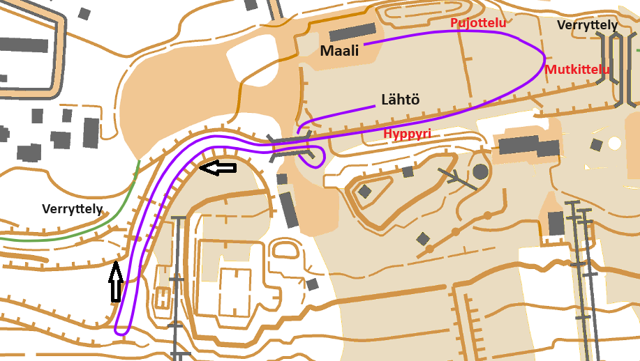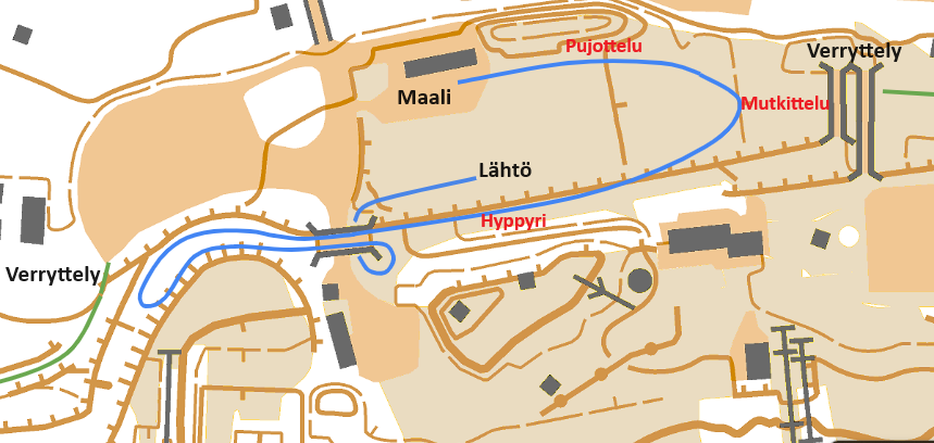 Radoilla ei saa verrytellä kilpailun aikana. Radat sulkeutuvat klo 11.55. Verryttelylatu SantaSportin suuntaan tai Tottorakan suuntaan.