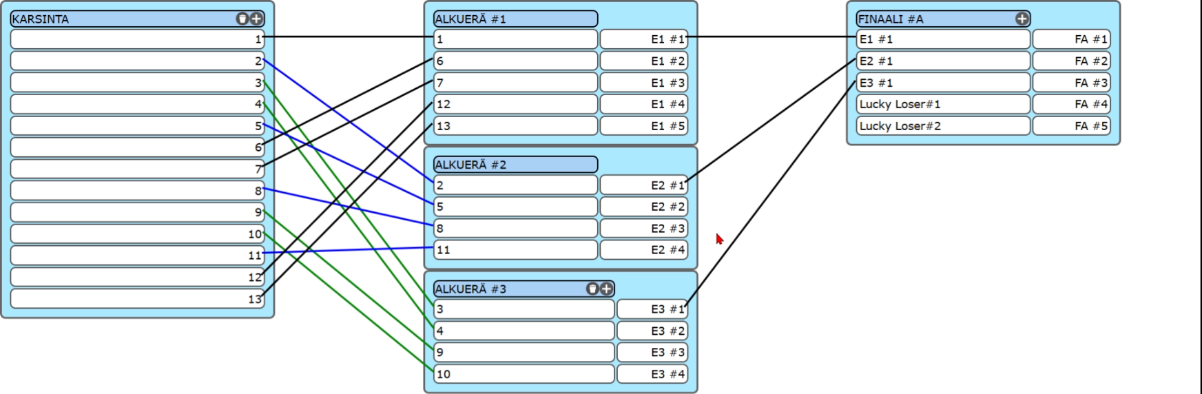 Alkuerien ja finaalien lähtöpaikka valittavissa tulosten perusteella